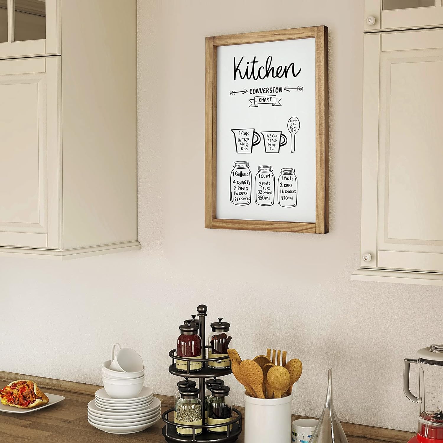 Merkmale: Beige und Creme-farbiges Holz, Holzschilder mit Wörter oder Sprüche, viel Deko, eine eigene Kaffee-/Frühstückstheke.