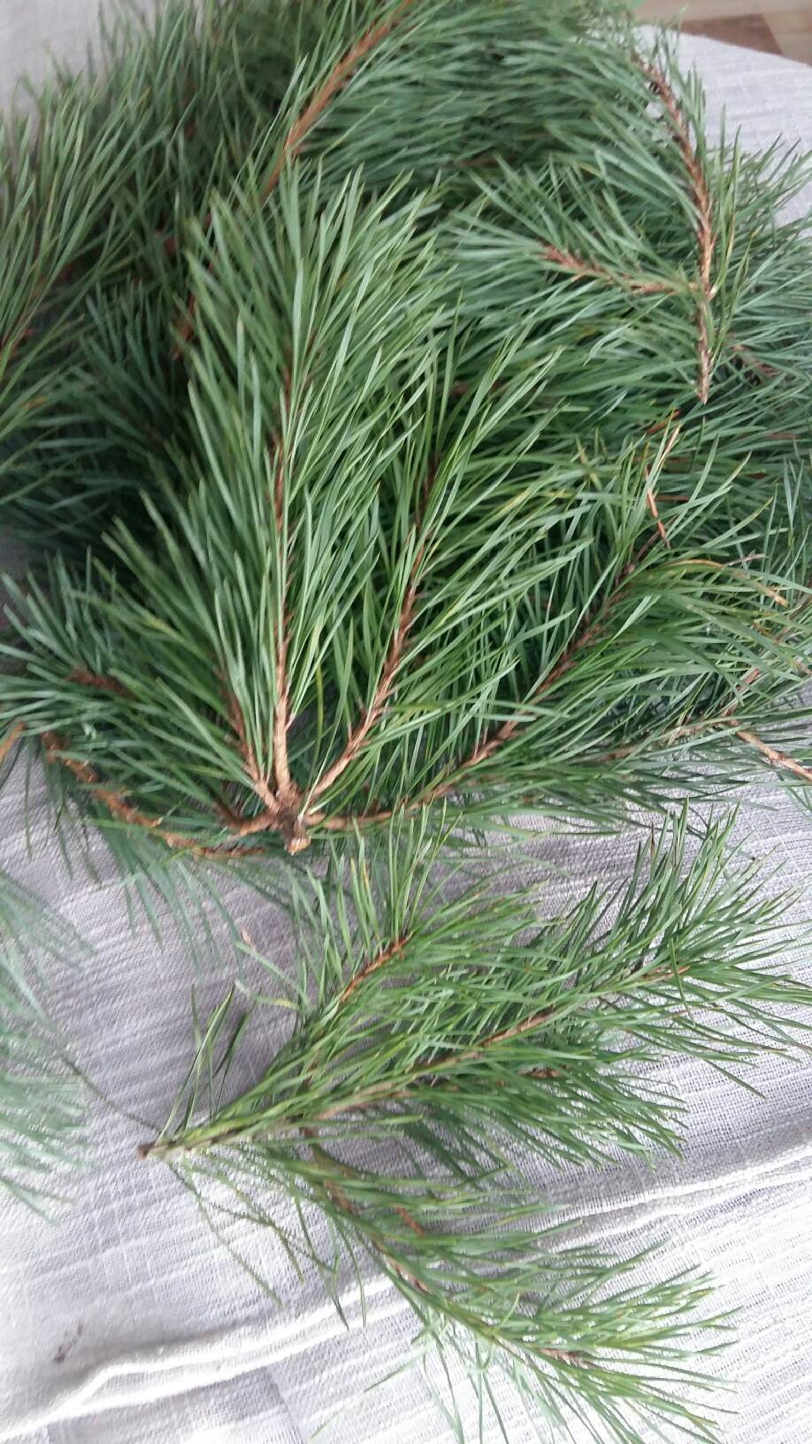 Um ganz korrekt zu sein, habe ich Weymouthskiefer, oder auch Seidenkiefer genannt, genutzt (jetzt habe ich tatsächlich auf der Bestellung nachsehen müssen). Diese Zweige eignen sich perfekt. Allgemein solltest du nach langen, schlanken Zweigen suchen, die einfach zu biegen sind.