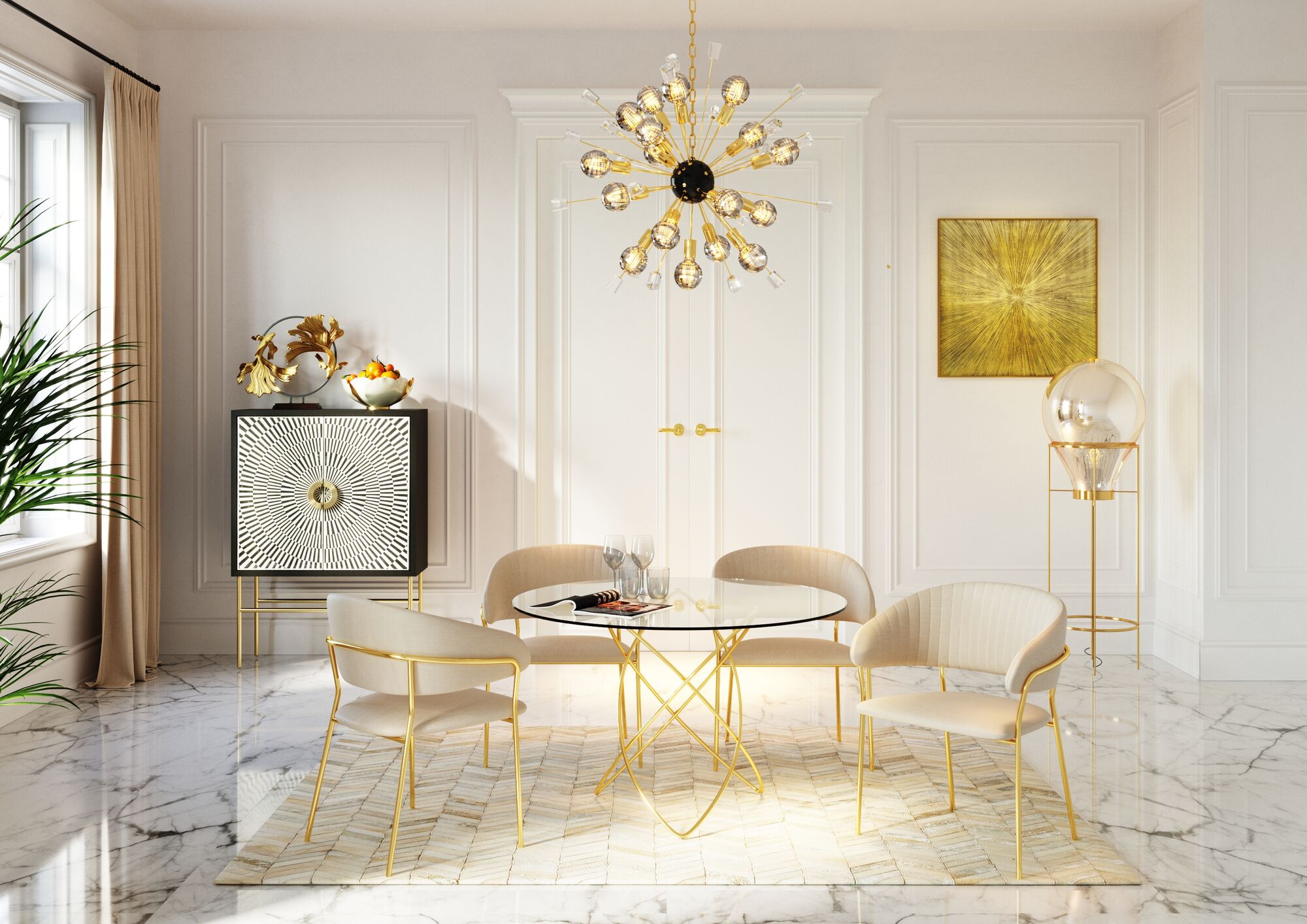 Kurvige Möbel mit geradlinigen Details und ein Hauch von Hollywood-Glamour