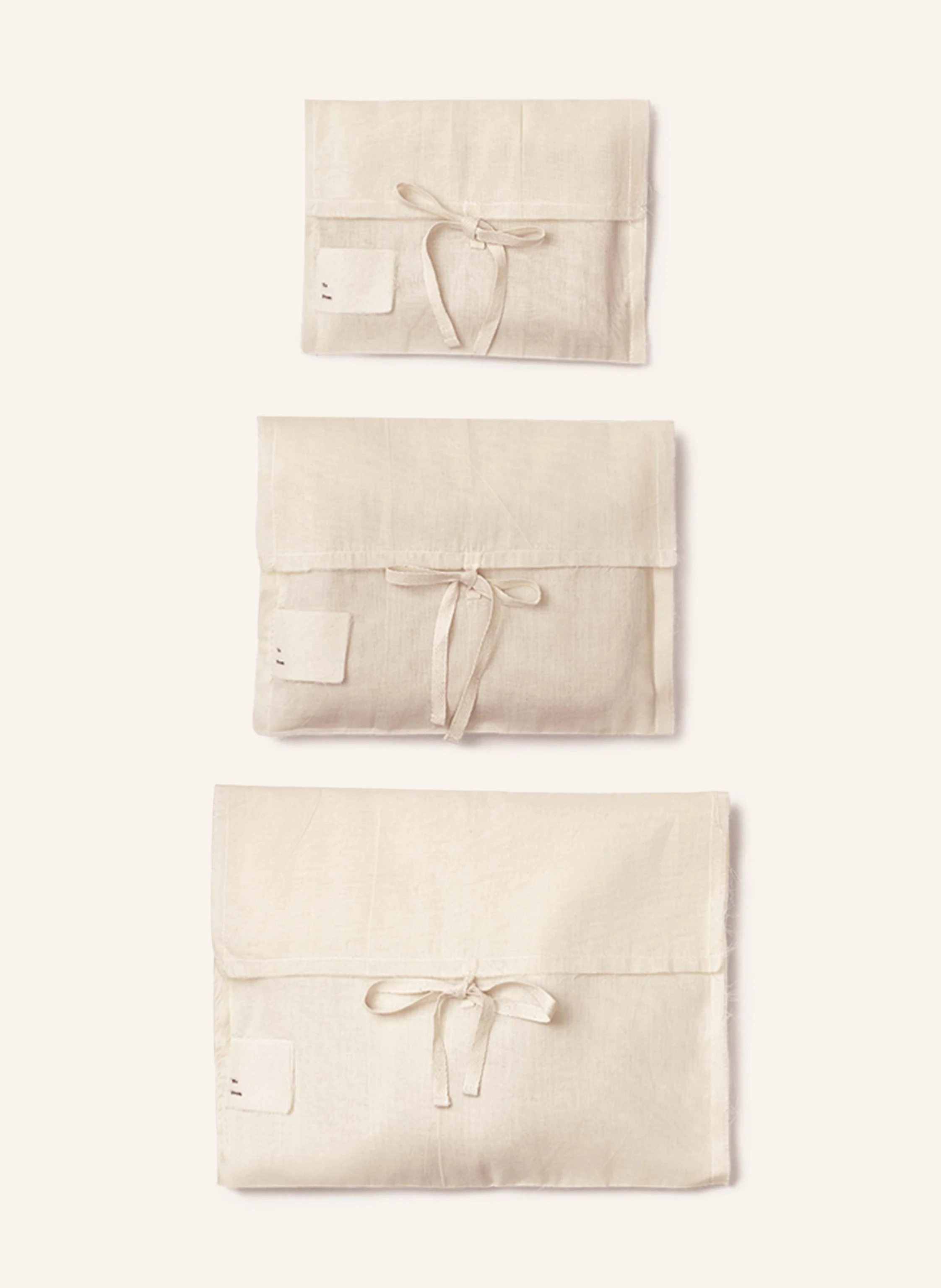 Es kann schnell sperrig werden, die Falten weigern sich manchmal schön flach zu bleiben. Also soll der Schal möglichst glattgebügelt sein. Bei kleineren Paketen sieht es besser aus, wenn sie wie ein Bonbon verpackt werden.