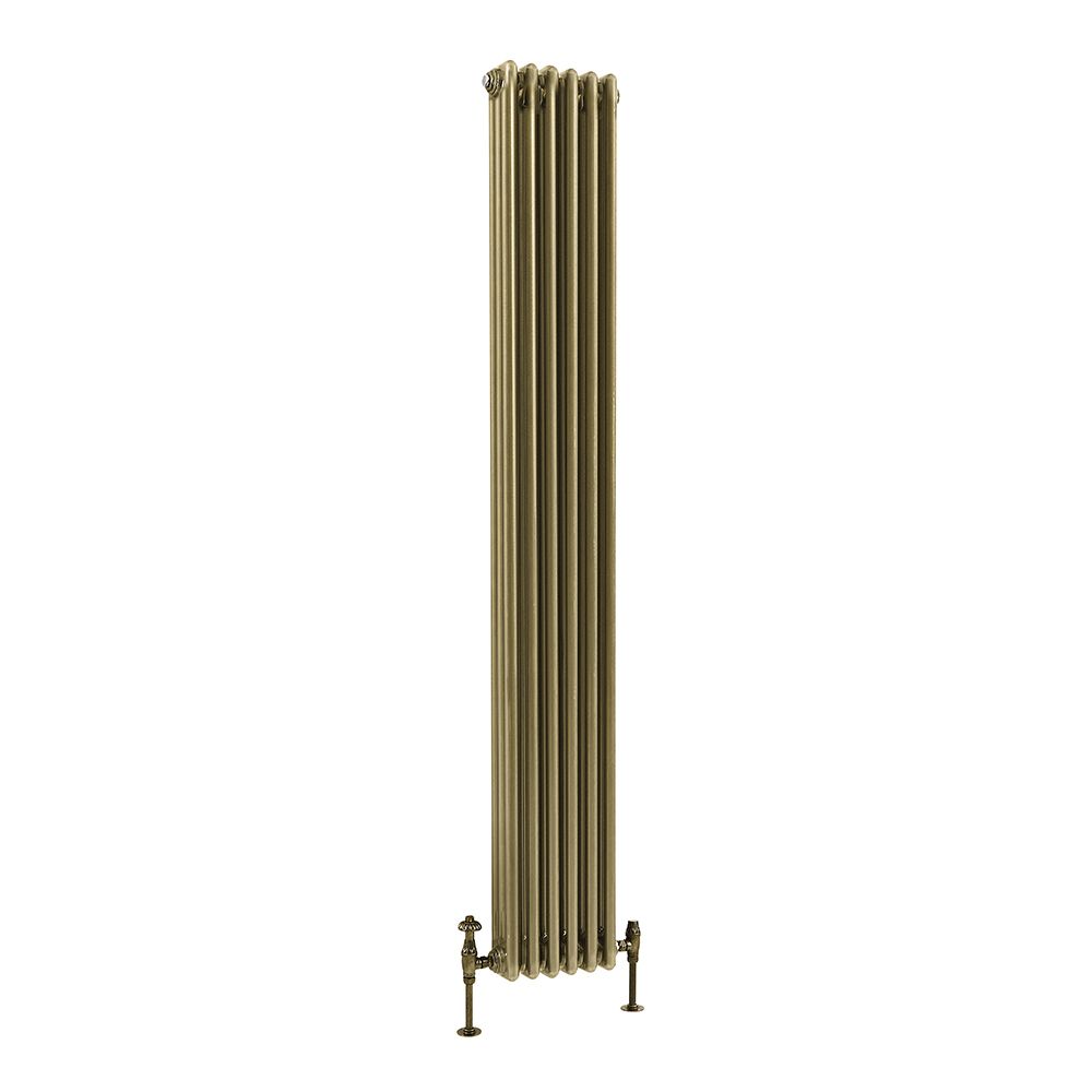 Dette er et lite toalettrom, men ingen vil gå på et kalt do. Så vi måtte ha en ny radiator. Men helst en som ikke tok plass. En høytstående gullfarget radiator var ikke bare funksjonell, men et dekorativt i seg selv og helt i tråd med resten av rommet.