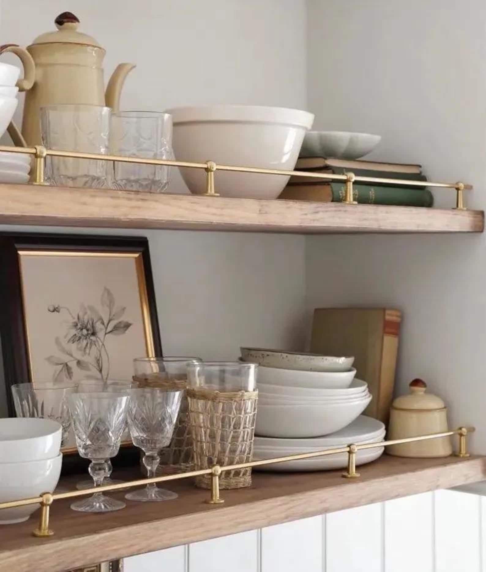 Jeg har prøvd å finne ut hva vi kaller dette på norsk. Hylle med rekkverk høres litt voldsomt ut. Uansett, jeg har lenge hatt lyst til å lage en hylle med “railings”, og her kunne jeg teste det ut uten å gjøre for mye «skade». Du trenger jo strengt tatt ikke en hylle på do, men den gir litt struktur i rommet og muligheten til litt pent og praktisk dekor.