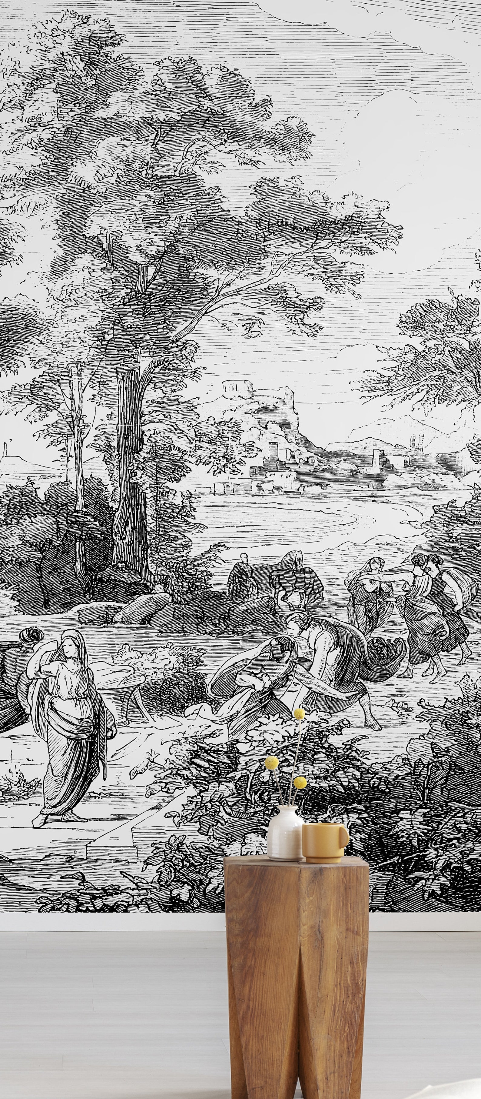 En krok eller nisje, som her, egner seg alltid utmerket for et skrivebord på stua. Gi det litt personlighet med en tapet og hjemmekontoret begynner å ta form.